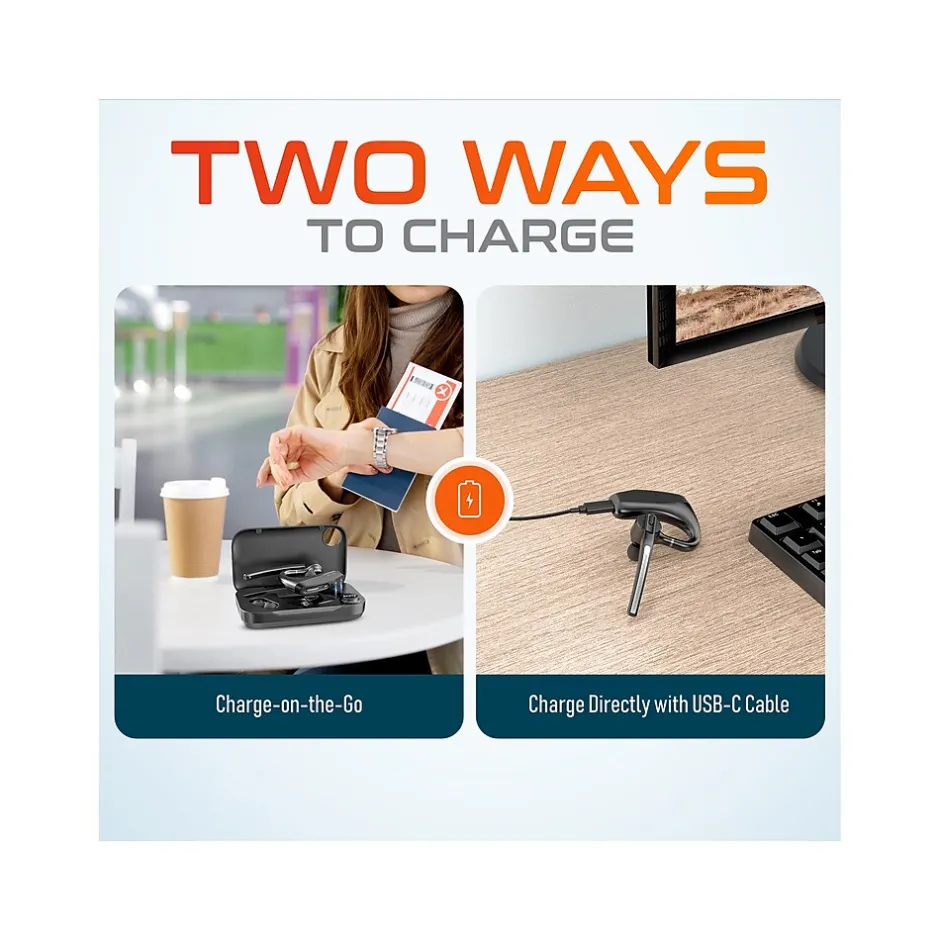 The Delton K130 computer headset is a perfect companion for productivity and seamless communication. With an impressive battery life of up to 12 hours of continuous use and an additional 72 hours available through the charging case, the K130 is always available when you need it to be. With three differently sized soft cushions to fit the wearer’s comfort, a crystal clear noise-canceling mic, and outstanding sound quality, it’s the perfect headset for any executive. Setup is a breeze with the included auto-pair USB dongle: just plug in, and you’re good to go.