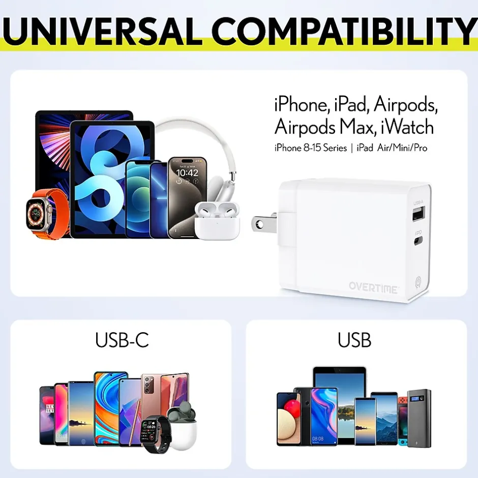 - Charge your devices quickly and efficiently with this powerful dual port USB/USB-C home charger.