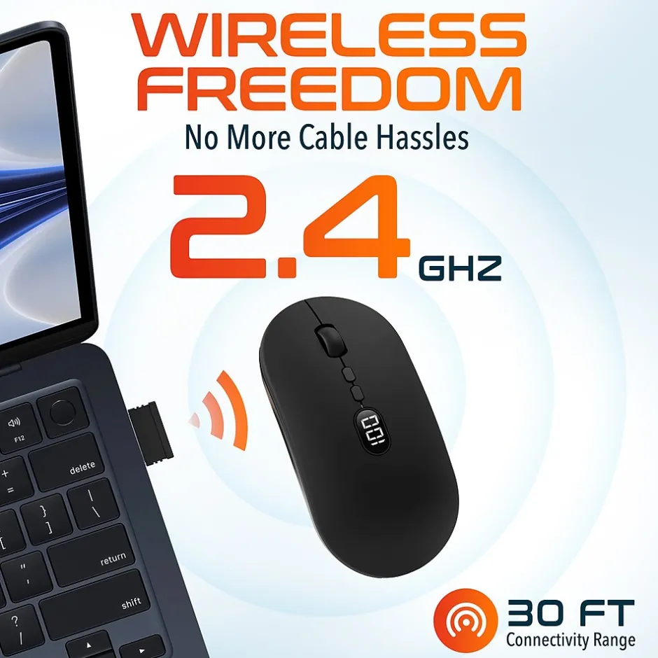 - This rechargeable mouse wireless features an advanced electronic display that provides real-time feedback on battery life, clearly showing the remaining power percentage.