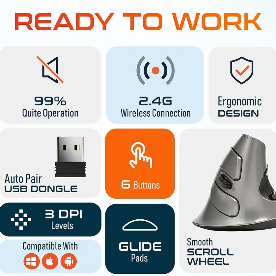- Rheumatologist-recommended vertical shape of this wireless computer mouse aligns the wrist and forearm in a natural posture, reducing the risk of repetitive strain injuries