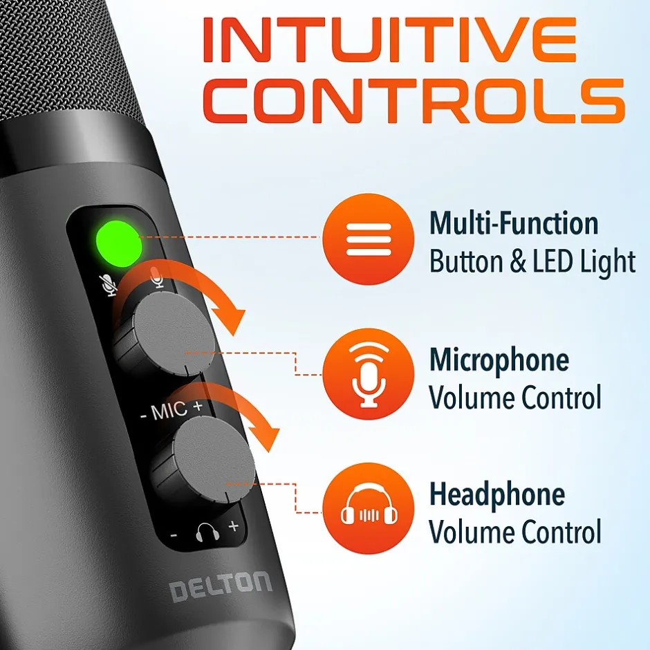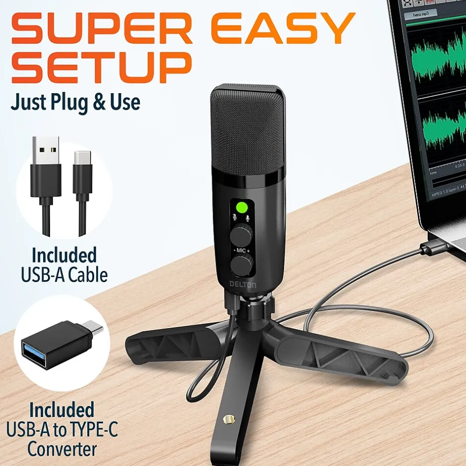 - Included in the package: Delton U3000 Microphone, Tripod Stand, Pop Filter & Filter Holder, Type-C Converter, Type-C Cable & Blowout Guard.