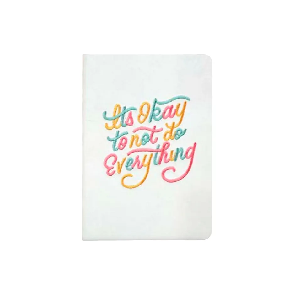- Features a vegan suede cover in white with multicolored text: It’s Okay to Not Do Everything