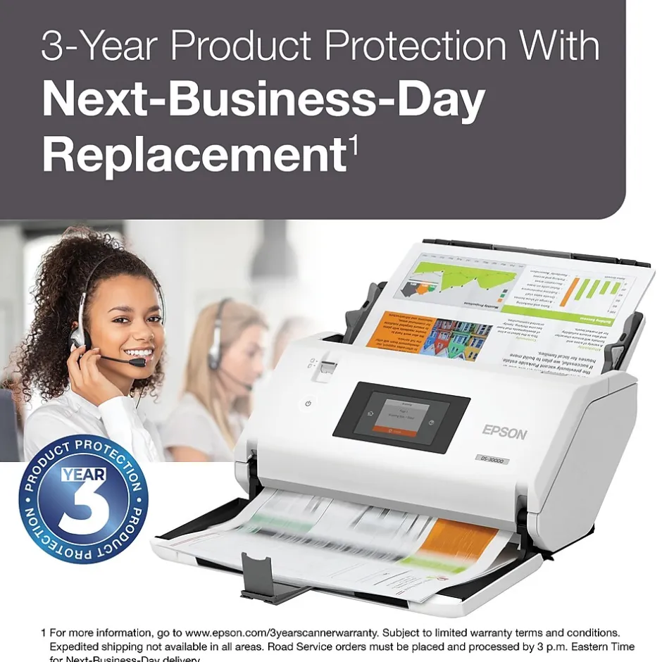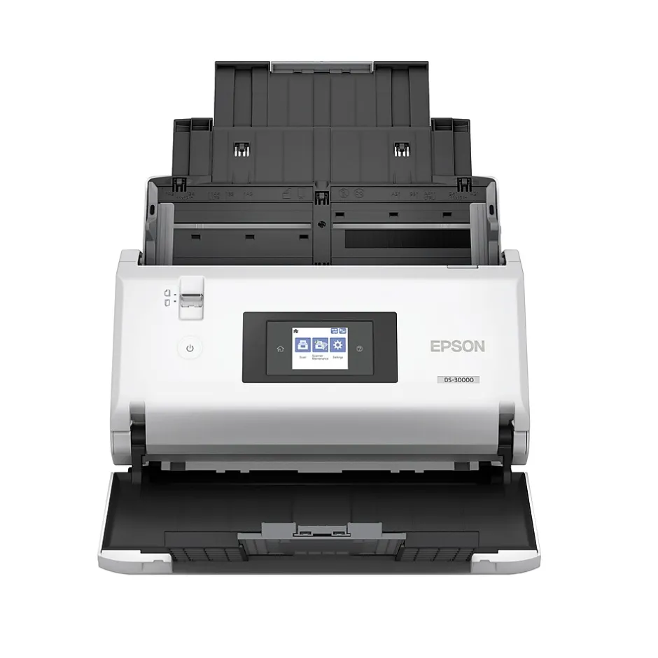 Designed for busy offices, the DS-30000 large-format document scanner makes it easy to take on any project. It features speeds up to 70 ppm and includes a host of productivity features, such as a 120-sheet Auto Document Feeder, dual-sided scanning and a 2.7″ programmable touchscreen. With versatile paper support, it can scan documents up to 12″ x 17″, as well as folded pages, plastic cards, sealed envelopes, passports and more. It also includes TWAIN and ISIS drivers for compatibility with existing software. Designed for the desktop, the DS-30000 easily fits your workspace. Plus, it delivers a 30,000-page peak daily duty cycle and is backed by a 3-year limited warranty.