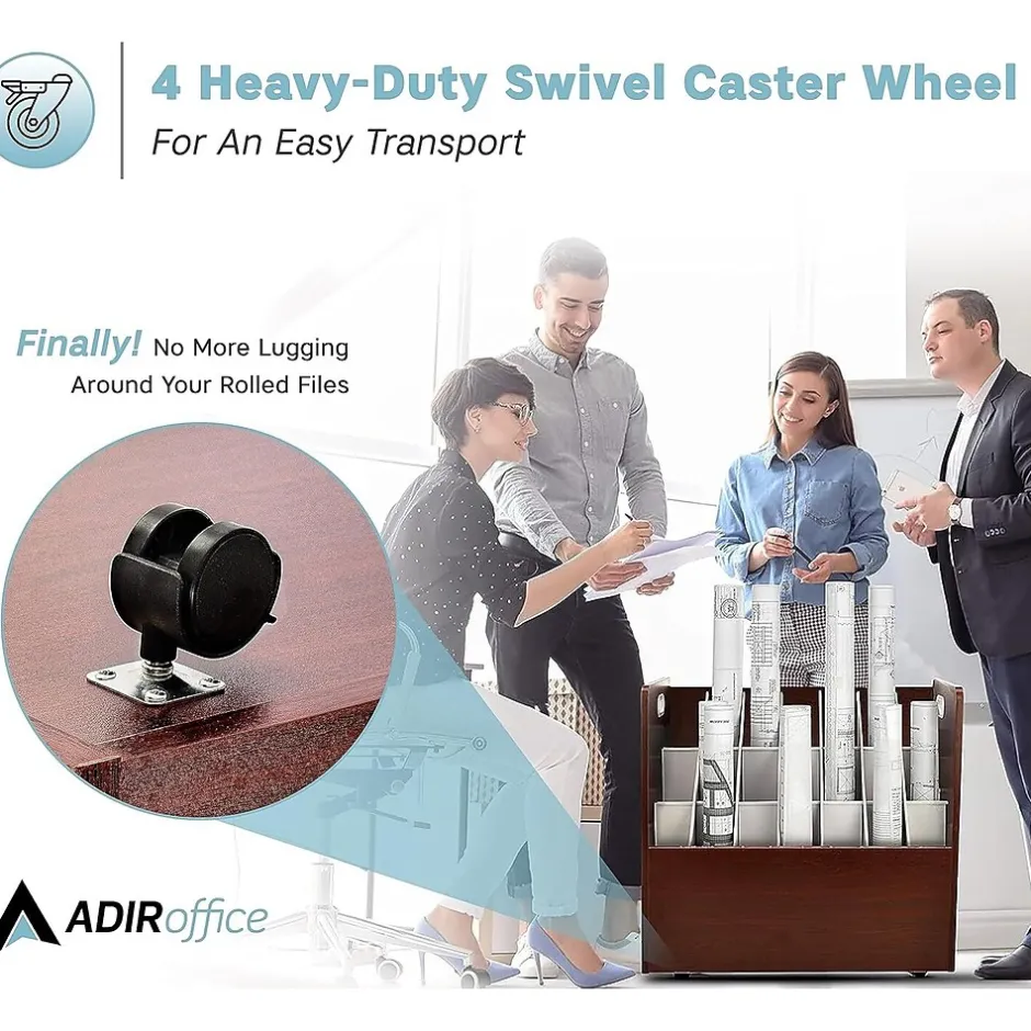 - AdirOffice Mobile Wood Blueprint Roll File is offered in tube slot option with 21 compartments to suit everyone’s storage needs