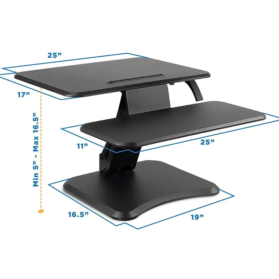 - EASY HEIGHT ADJUSTMENT: Sit to stand in seconds with this standing desk converter. The gas spring mechanism allows for smooth up and down height adjustments from 6.25″ to 17″, allowing you to find the perfect height.