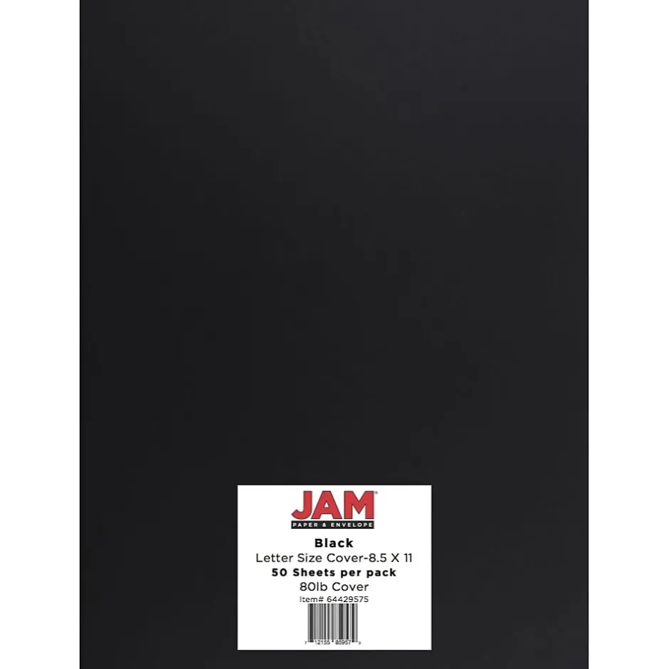Smooth and luxurious, JAM PaperĀ® Premium Paper Cardstock is perfect for all of your paper using needs! From invitations, letters and business mailings, to cards promotional flyers and arts and crafts, this paper is incredibly versatile. It is made of 80lb paper, so it looks and feels thick and high quality. The smooth finish offers the perfect finish to write and print on. This particular cardstock is a pure black color so it offers a cool, modern look. Try using metallic markers and pens to make a statement! This cardstock is a standard letter size, meaning it measures 8.5 x 11 inches. It is sold in packs of 50.