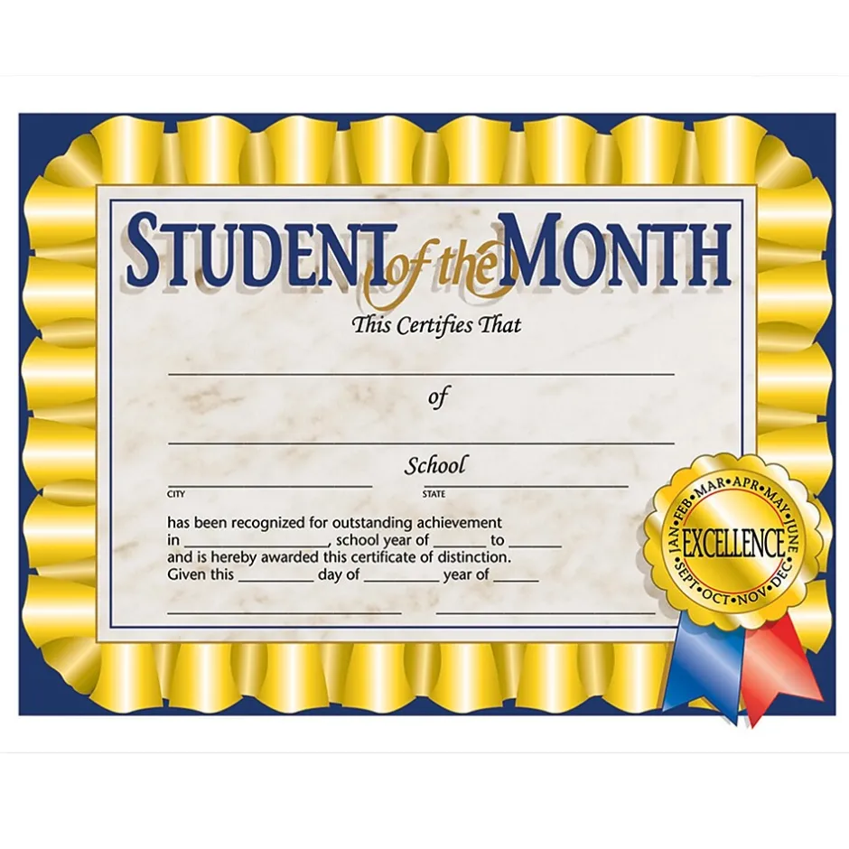 - Student of the Month Certificate, Multicolored; Use for any classroom or school award