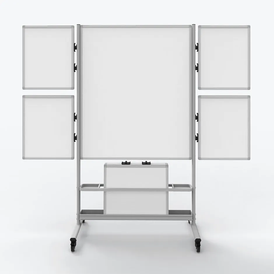 Transform your business or classroom into an interactive workspace with the Luxor Collaboration Station, a double-sided mobile magnetic whiteboard with four attachable marker boards. Designed to create a productive work environment where teammates can interact and share ideas, this mobile whiteboard’s surface area is easily extended by attaching four small whiteboards to connectors on the sturdy steel frame. The double-sided small boards can be used individually and when not in use, are conveniently stored in the built-in storage tray. Whether visualizing ideas on the large whiteboard or with all five boards joined together, or using individual boards for group interaction, the Collaboration Station is the perfect tool to inspire innovation and creativity.
