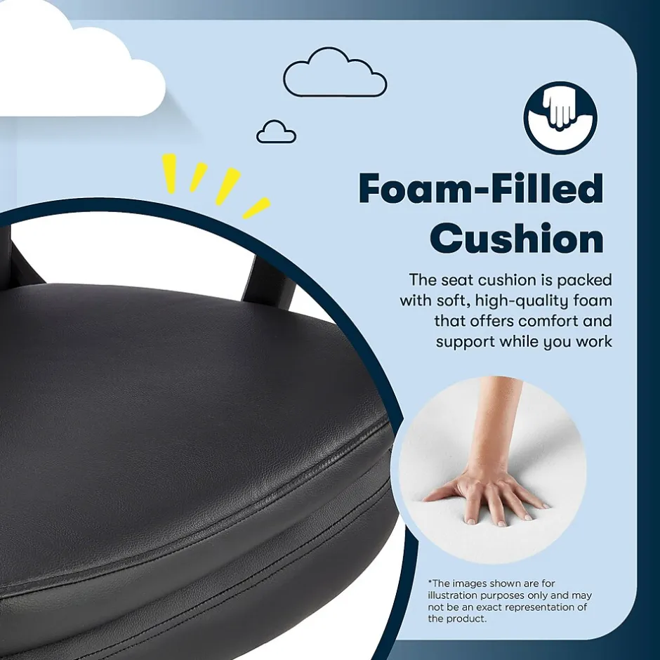The better you sit, the better you’ll feel. Whether for work, play, or any other activity that has you sitting in our chairs, we believe comfort is everything. We know it’s a big responsibility and take it seriously, just as we do with our mattresses. With over 15 years of making chairs and innovating with designs, materials, and technology, Serta knows what it takes to give you a comfortable sit. Unwind, recharge, and conquer your workday with the Serta Comfort Modern Executive Office Chair. Featuring plush mid-back support, clean lines, luxurious channel-tufting and sculpted arms, this chair will elevate any space. A semi-plush, double-layer cushion seat with generously padded back and armrests provides ample lumbar support and will help you maintain a positive ergonomic posture while surrounding you in comfort. Thick non-recycled Serta quality foam is upholstered in a soft to touch breathable bonded leather to keep you cool during extended sitting times. Available in Black, Brown, Gray, or Cognac with matte black components. A 360º swivel metal base gives you mobility throughout the day and handles weight up to 275 lbs. Plus, the double-wheel casters ensure smooth gliding over rugs and carpet floors so you can scoot around your workspace with ease. Finding your ideal seated position is a breeze with the convenient seat-side lever. Simply adjust the height to perfectly match your stature and desk setup for a personalized fit. A perfect workday companion that adapts to your needs, the Serta Comfort Modern is made for productivity and well-being whether you’re tackling the day from a corner office or at home in the bedroom.