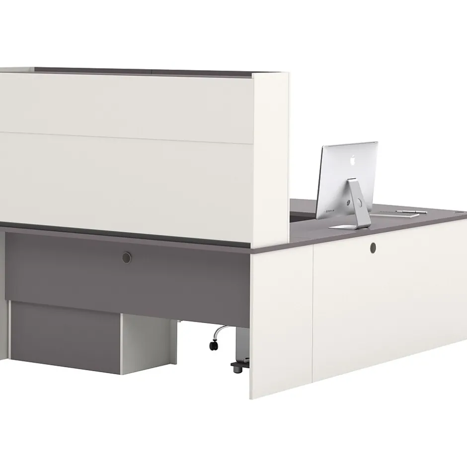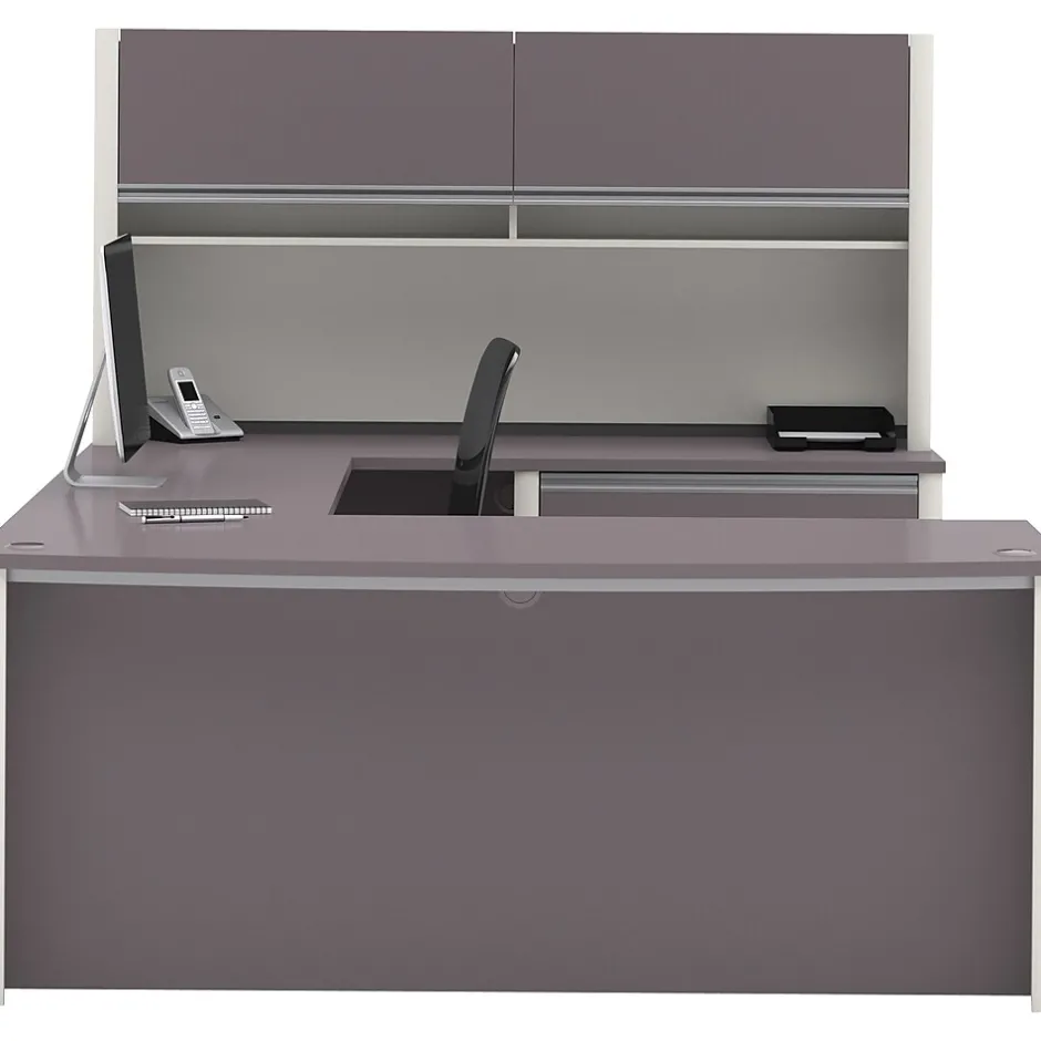 - Matching overhead hutch offers additional storage with 2 flip doors and paper management compartments
