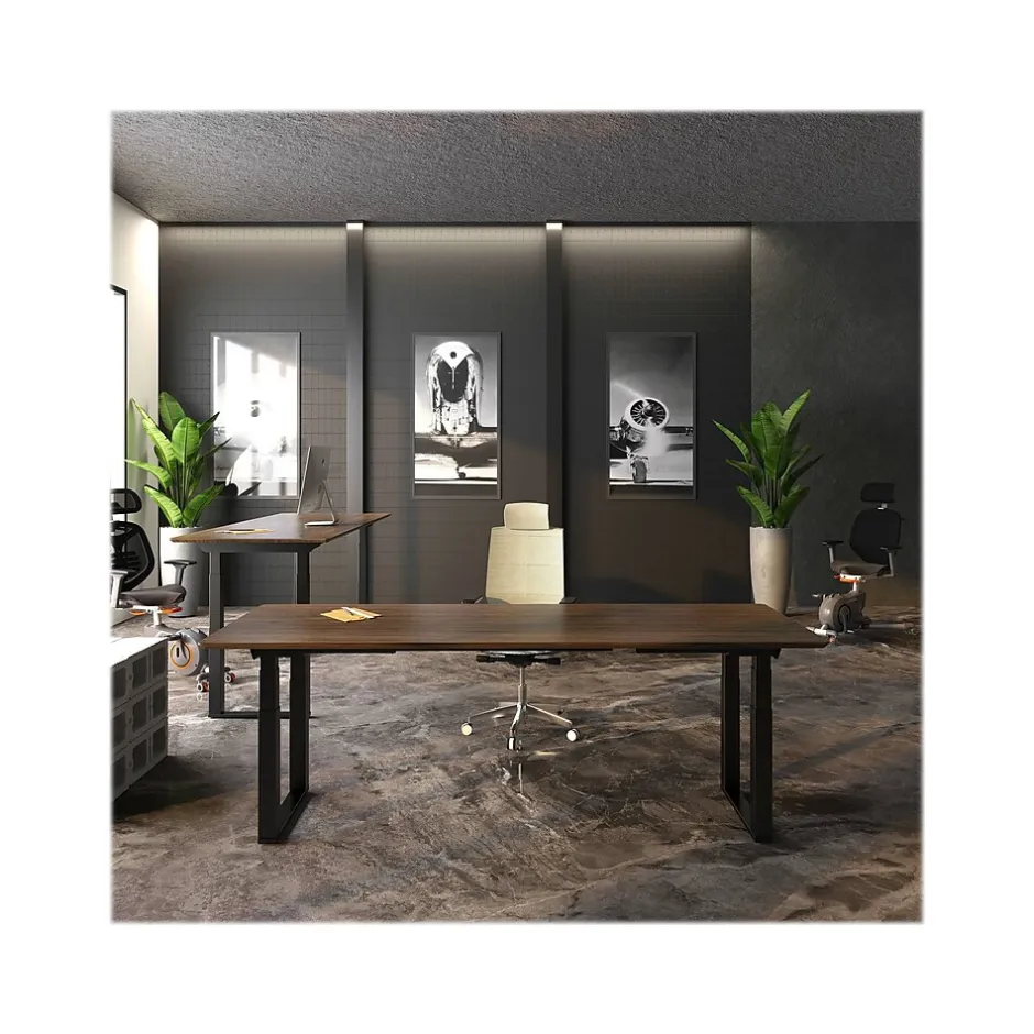 The FlexiSpot E7Q Odin executive desk is a great solution for small conference rooms, huddle rooms, and collaboration areas. It also makes an amazing home office desk. The E7Q features a four-motor height-adjustable base that can support up to 440 lbs. The desk’s holeless columns are not only attractive but prevent the buildup of grease on the moving stages. The anti-collision feature reverses the direction of the desk if an object is struck during movement.