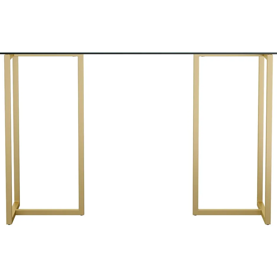 - Comes in modern style, featuring a 0.31″ clear tempered glass desktop and powder-coated steel frame in a polished brass finish