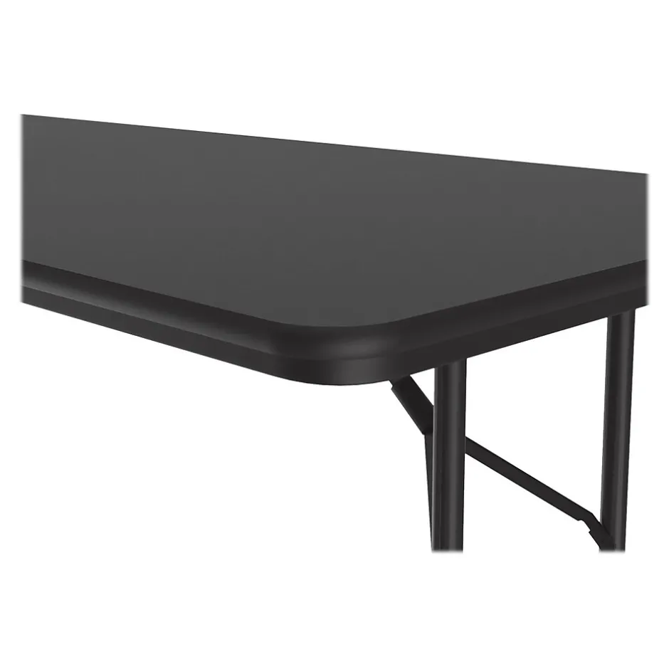The Correll folding table is durable for heavy-duty home, office, school, church, food service, and commercial use. Its thermal-fused laminate top is water-, stain-, and dent-resistant. The table folds for portability and storage space.