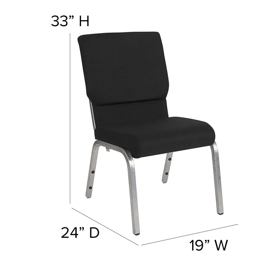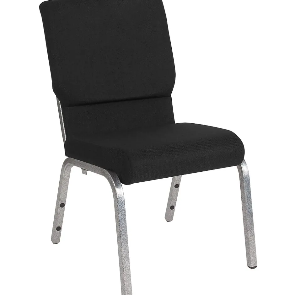This beautiful church chair will keep your guests supremely comfortable whether you’re hosting an all-day seminar, serving a 10 course meal or delivering your most inspirational sermon. This chair offers an advantage over pew seating with the flexibility of creating different seating configurations. The chair’s cushioned back and 4″ thick seat are generously padded and covered in durable fabric upholstery. The seat has a waterfall edge that reduces pressure on the legs. A convenient book pouch on the back of the chair keeps seminar materials, bibles or hymn books readily available. Built-in ganging brackets connect your chairs and maintain nice, straight rows. Its sturdy 16 gauge steel, gold vein frame, with gracefully angled legs, has been tested to hold up to 800 pounds and plastic rocker glides protect your floor by sliding smoothly. This Church Chair is an excellent option for hotel lobbies, banquet halls, conference facilities and worship centers.