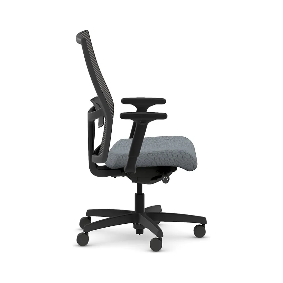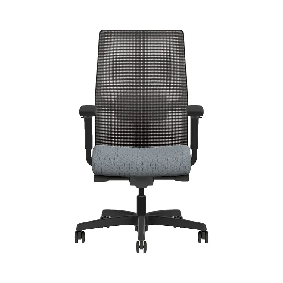 - Four-way stretch mesh back in black, Apex basalt gray fabric seat, and black frame