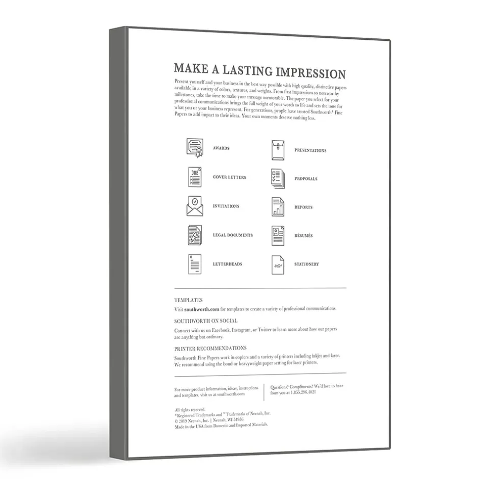 This 32 lb. fine stationery has a rich linen paper texture and distinctive crispness that set it apart from ordinary printer paper or copy paper. These papers are lignin and acid-free, feature a watermark, have matching envelopes available, and are copier, inkjet, and laser printer-compatible. You can trust high-end Southworth Resume Paper to help your résumé, cover letter or thank you letter make a great impression.