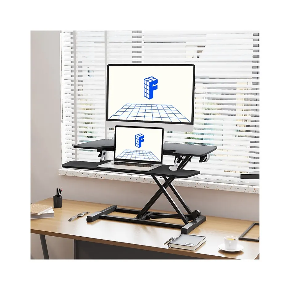 - Standing desk converter provides an easy way to transition between sitting and standing throughout the workday