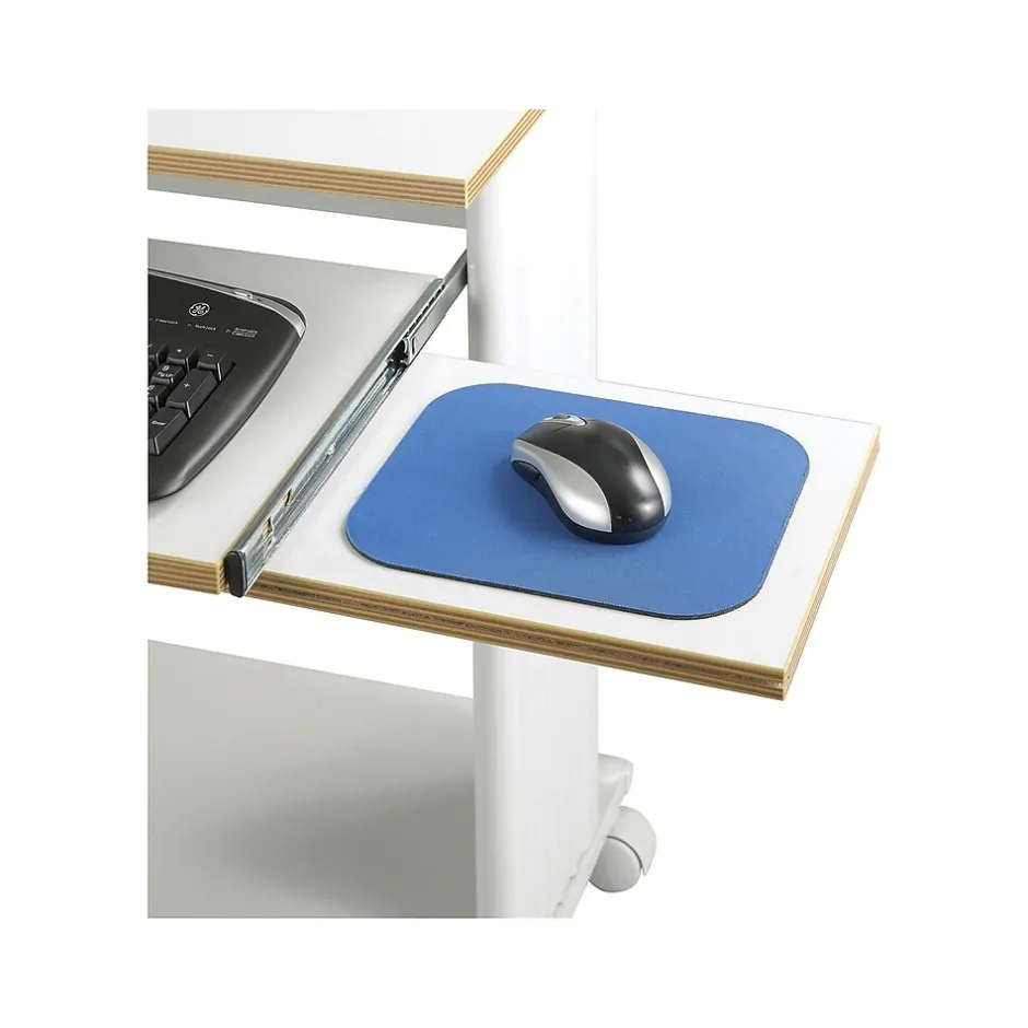 Maintain an active, healthy work environment with this stand-up workstation. It has a fixed height of 45 inches to suit kiosks and space-saving work spaces, and it has a pull-out keyboard tray and multiple shelves to support a complete computer system with a printer and other peripherals. This 29.5-inch Safco Muv stand-up workstation has molded side panels to neatly conceal cables, and the locking casters offer mobility and stability.