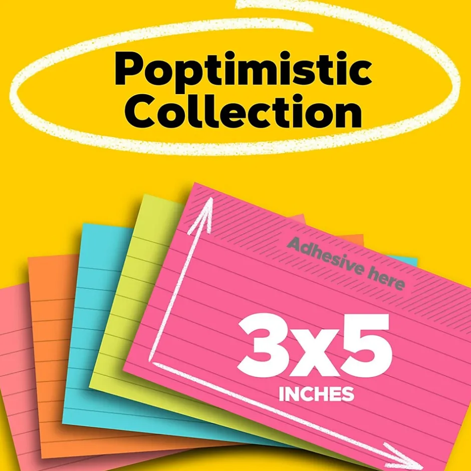 3 in x 3 in size is great to call out important information or leave notes in calendars or planners. Lined notes are great for lists. The Poptimistic collection gives your messages pop and optimism with bright colors that grab attention. America’s #1 favorite sticky note.