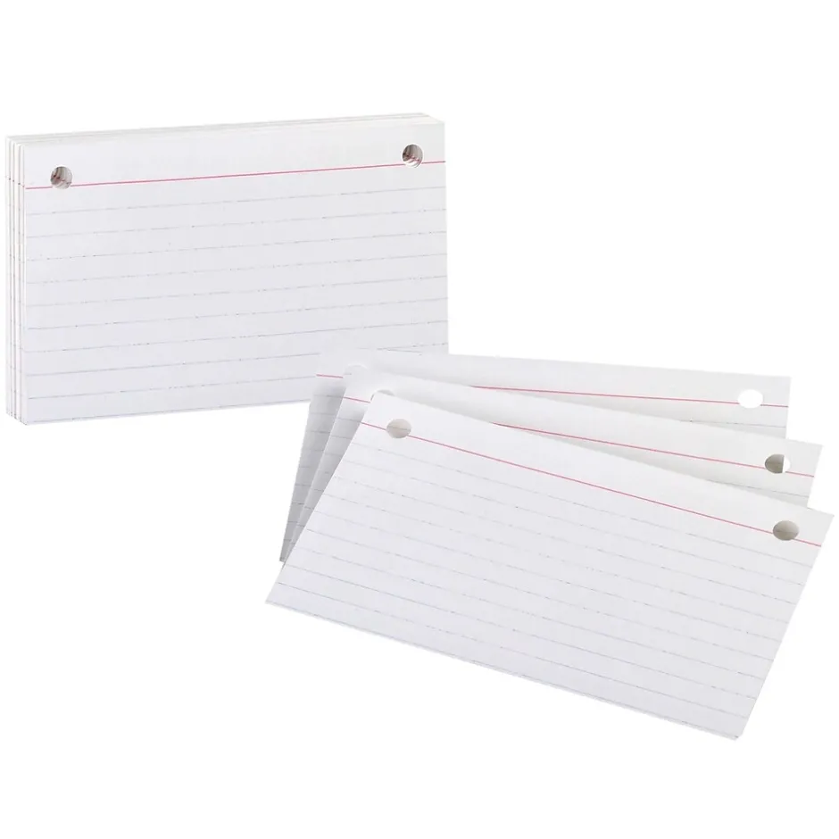 The Oxford® white printable ruled index card features ruling on one side for writing neat notes and blank on other side for customization. This 3″ x 5″ index card has 2-hole punch for securely storing on the card binder.