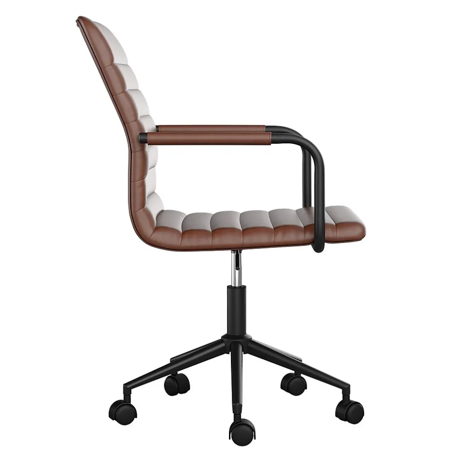 - Contemporary style office chair in saddle brown faux leather upholstery