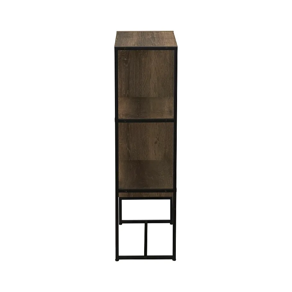 - Bookshelf is designed with small spaces in mind; comes with durable black steel legs and frame paired with high-quality engineered wood finished in scratch-resistant brown ashwood grain laminate