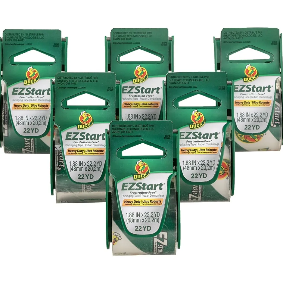 Skip the annoyance of moving and shipping tapes that split or tear. Duck® Brand EZ Start® Packing Tape is designed to be Frustration-Free® so it always unrolls smoothly, easily and quietly. Featuring a long-lasting adhesive, you can keep your boxes and packages secure during shipping, moving and storage. Plus, the tape starts easily off the roll, eliminating the frustration of losing the tape end so you can pack up and leave the stress behind. This crystal clear packing tape unwinds quietly, so it’s perfect to use in the office or at home.