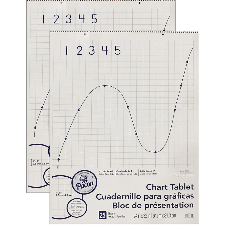This Chart Tablet features White sulphite bond paper that is spiral bound to stiff covers. It is 2-hole punched on top for easy hanging. Ruled on one side with 1″ squares. Perfect for charting plot points, making tables, structure math projects and much more. Works great for classroom anchor charts. Measures 24″ x 32″. Each chart tablet includes 25 sheets. Sold as a pack of 2 charts.