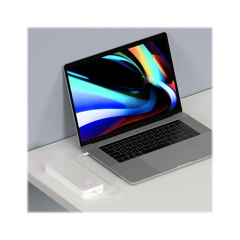 - Package includes: power bar, USB-C to USB-C cable (3′), USB-C to Lightning cable (3′), USB-C to USB-A adapter tip