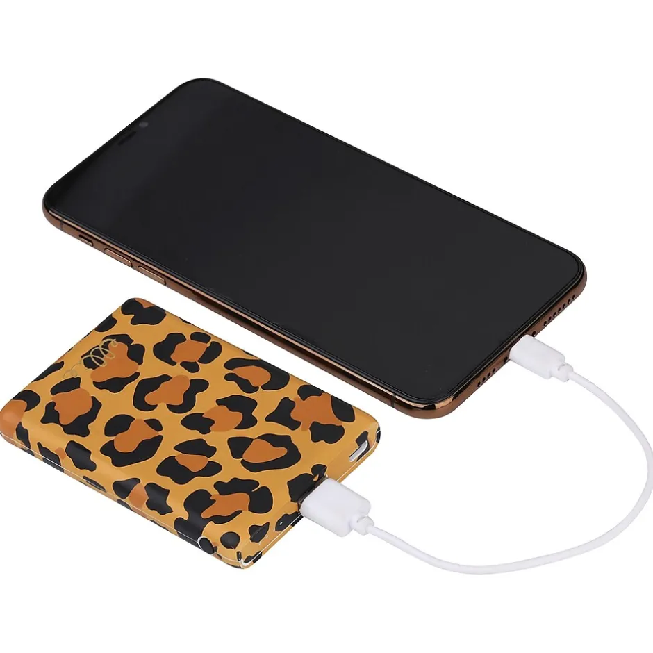 The Leopard Ellie Rose 5,000 mAh Power Bank keeps your tech charged in style while out and about. This power bank is slim fit and is lightweight with a soft matte finish. The Ellie Los Angeles power bank offers up to 24 hours of extra battery life. It’s rechargeable via the included USB cable.