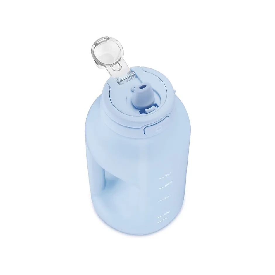 The ello Hydra water bottle with straw includes time markings to remind you when it’s time to drink water throughout the day. The one-touch flip lid keeps the drink surface covered and clean. Extra-wide opening for easy filling, adding ice, and cleaning. Choose between the integrated carry loop or soft-touch handle on the side for easy grab-and-go.
