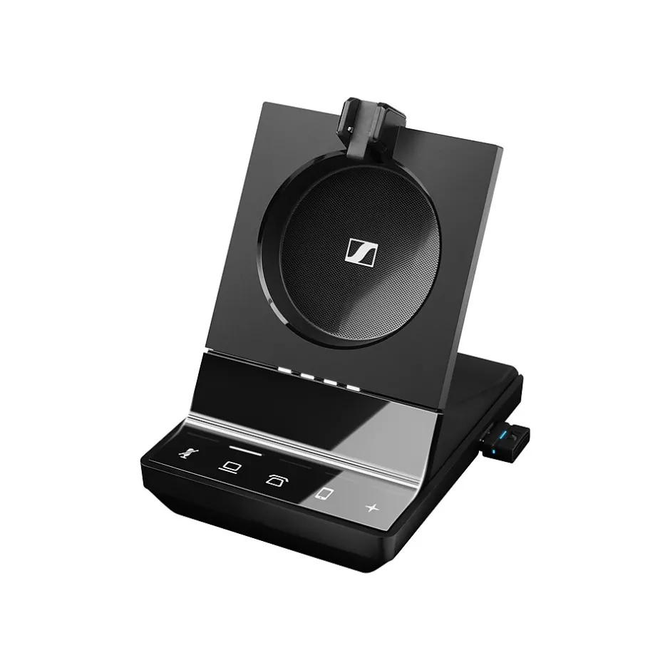 Single-sided wireless DECT headset with triple connectivity to softphone/PC, desk phone and mobile for maximum device flexibility. Super wideband audio, pioneering own-voice detection technology and a two-microphone noise-canceling system provide superior and exceptional sound. Enhanced security features keep conversations confidential.