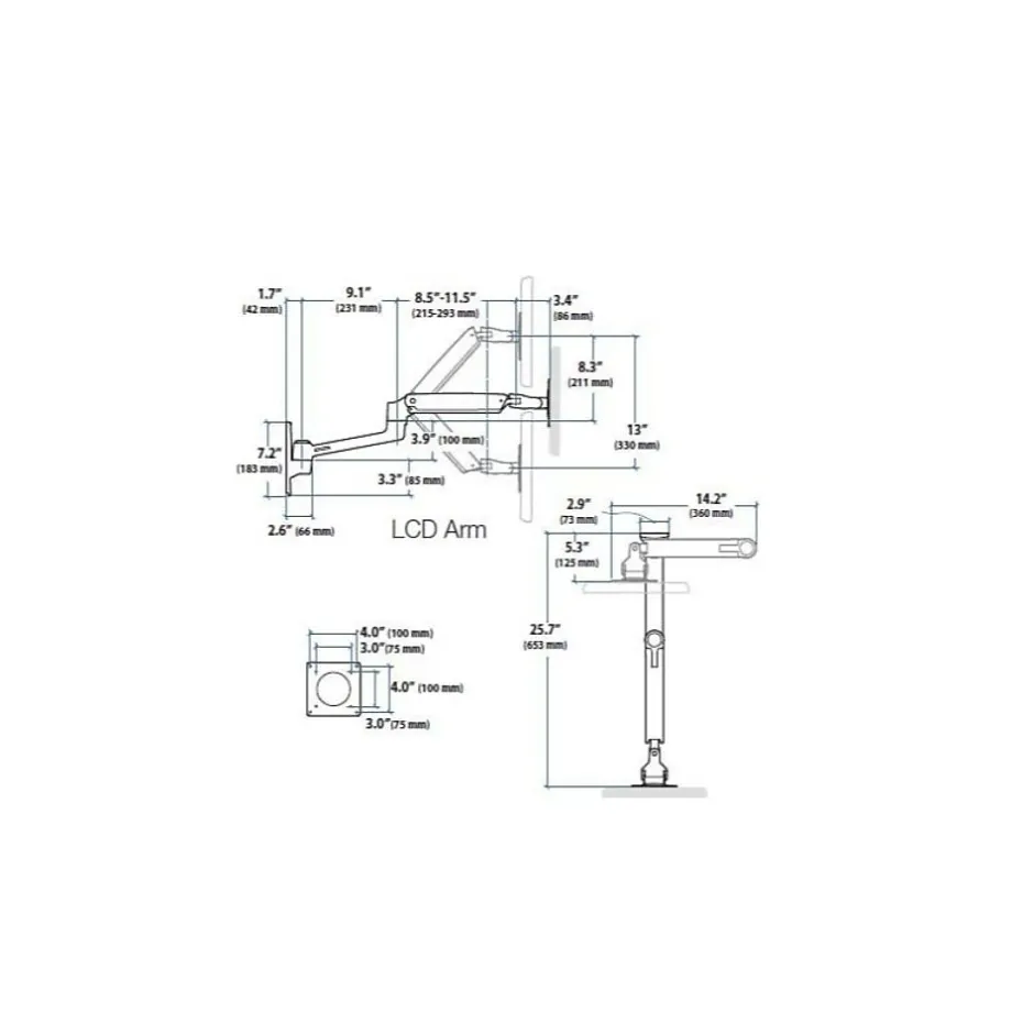 - Extends LCD up to 25″ (64 cm); keyboard tray extends up to 35″ (89 cm); push your display and keyboard out of the way when not in use