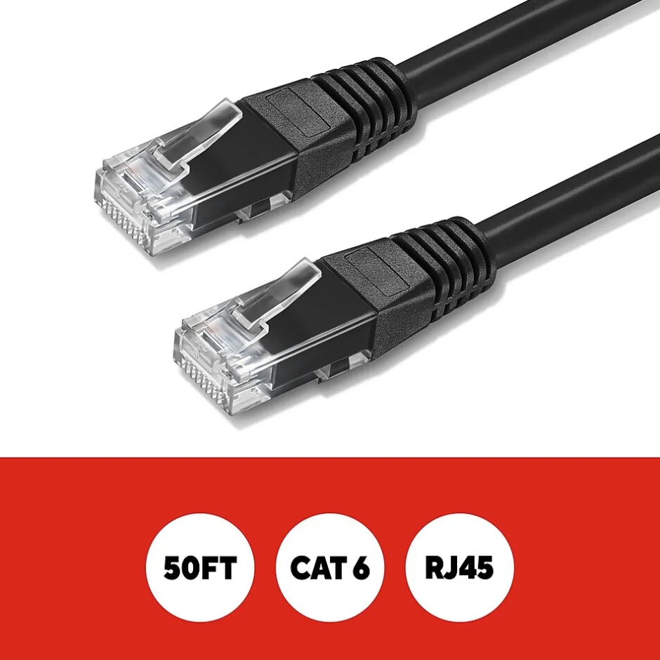 Connect high-speed network devices – like modems, PCs, laptops, smart TVs, gaming consoles and more – with this Staples TECH Ethernet cable. The 50-foot cable provides extra length to connect from across the room, while the CAT 6 configuration offers data transfer speeds up to 10Gbps for fast performance. This Staples TECH CAT 6 Ethernet cable has snag-free RJ45 connectors for an efficient and stable signal between compatible devices. Backed by Staples Brands 100% satisfaction guarantee, or your money back.
