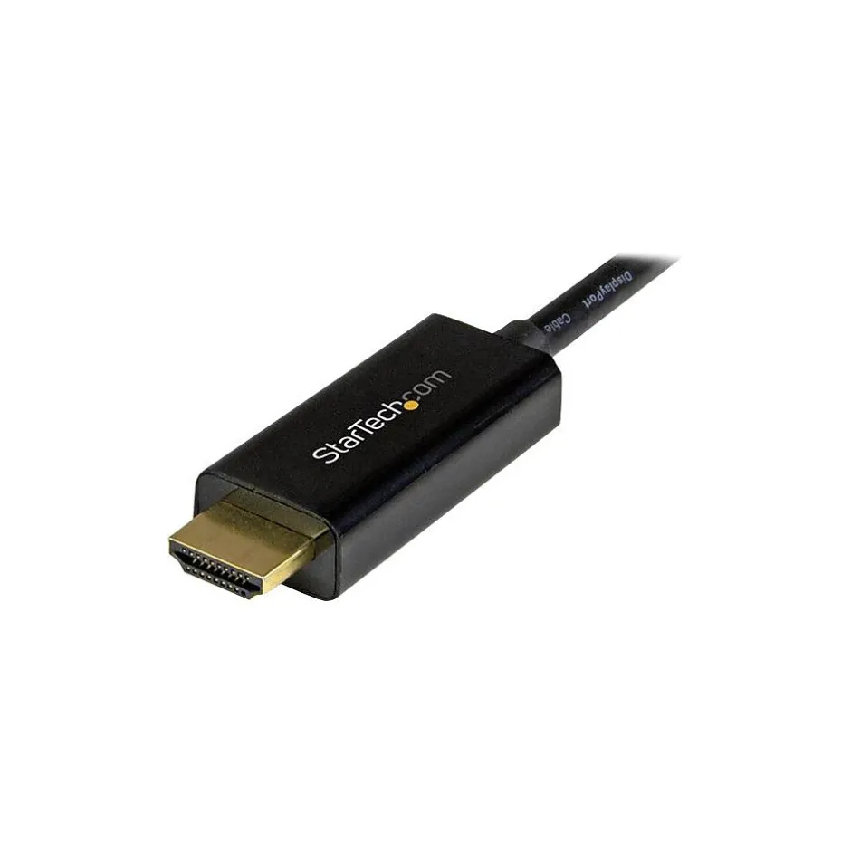The StarTech.comĀ® MDP2HDMM3MB Mini DisplayPort to HDMI adapter cable in black, supports 4K x 2K resolutions at 30 Hz, supports wide screen and 7.1 surround sound audio. This 3 m cable helps you to avoid the hassle of converters and reduces the clutter with a compact adapter cable. The DP to HDMI adapter connects directly from DisplayPort video source to the HDMI port on display. This adapter cable is compatible with projector, macbook, ultrabook and laptop computer.