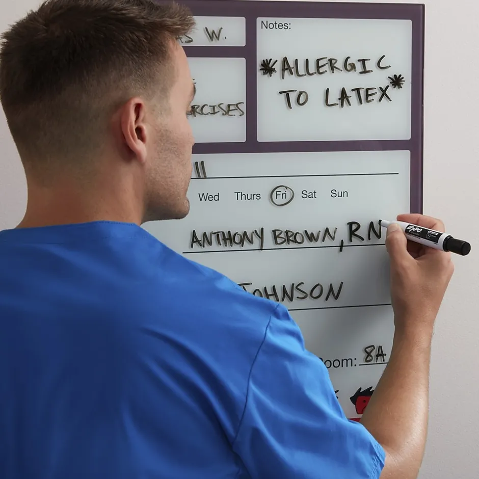 Draw diagrams or design presentations with this 4-count pack of EXPO dry-erase markers. The chisel tip lets you create wide or thin lines, and integrated magnets stick each pen to any metal surface for easy storage. The vivid colors of these EXPO dry-erase markers are visible from a distance and easily erased from whiteboards or other nonporous surfaces.