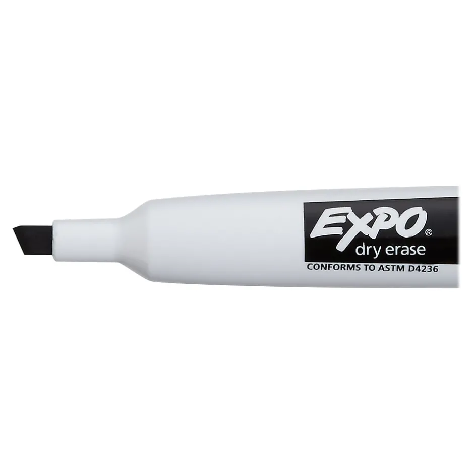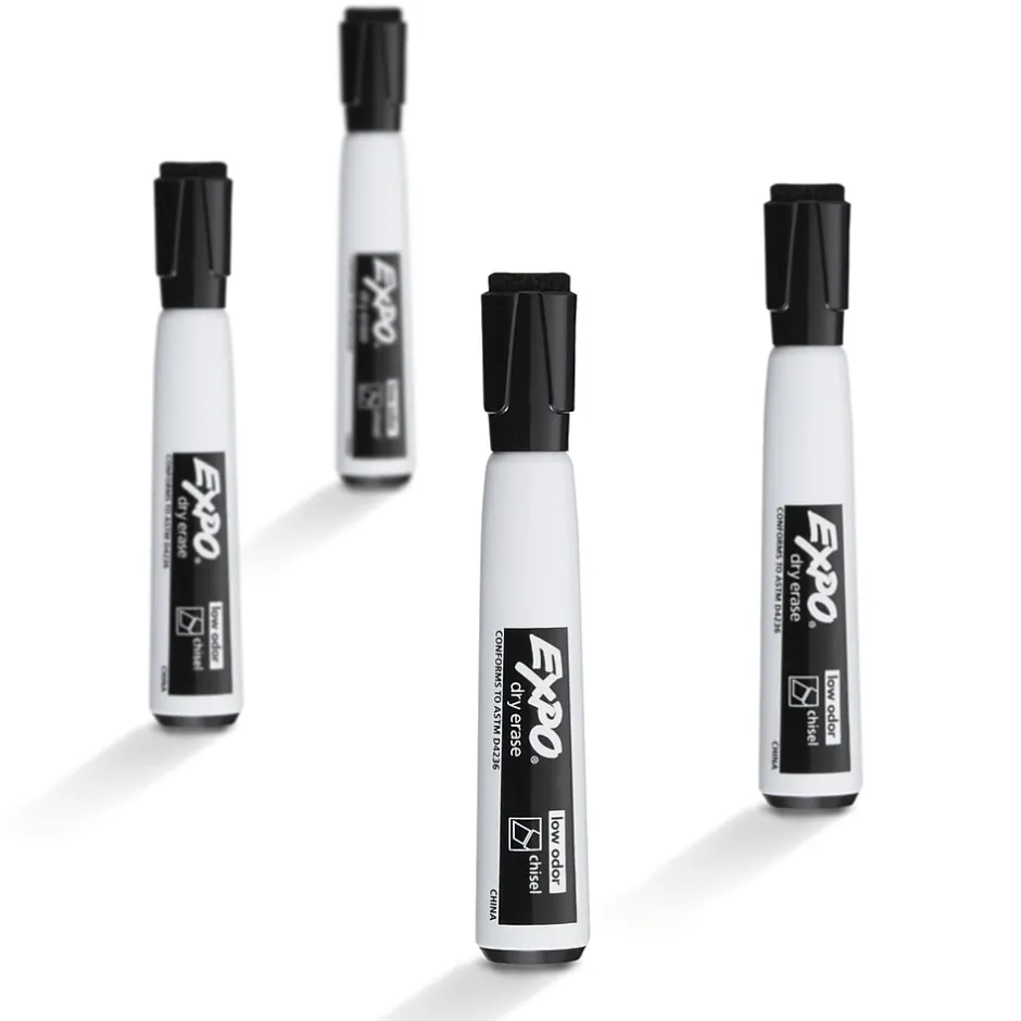 Draw diagrams or design presentations with this 4-count pack of EXPO back dry-erase markers. The chisel tip lets you create wide or thin lines, and integrated magnets stick each pen to any metal surface for easy storage. These low-odor markers are ideal for enclosed spaces like classrooms and offices. The black ink dries quickly, and the dark, intense color is easy to see from the back of the room.