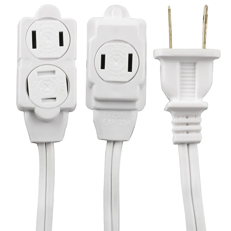 GE 3-Outlet extension cord is available in white color and is ideal for small appliances, lamp’s and office equipment operating at less than 13 amps. Cord ensures the proper alignment between hot and neutral wires.