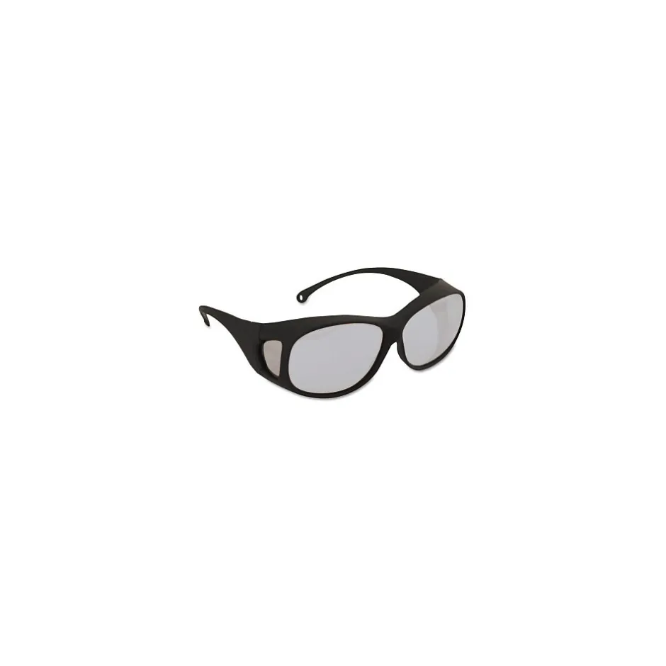 KleenGuard OTG⢠Safety glasses in clear color have black frame and are made of polycarbonate material with scratch-resistant/anti-fog coating. Glasses have integral side shields for extra protection and fit over most prescription glasses.