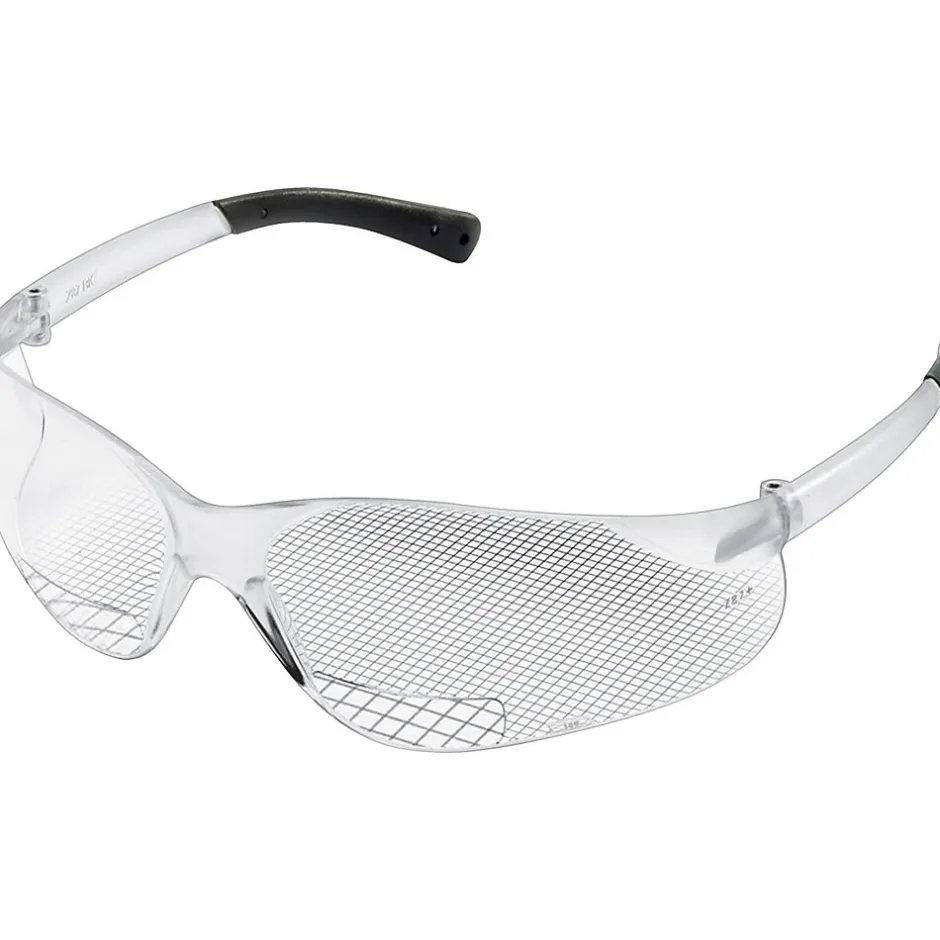 MCR Safety® BearKat® Crews ANSI Z87 Magnifier protective glasses in clear color with lens that are made of polycarbonate with Duramass® coating to resist scratch. Glasses have 1.5 diopter strength and non-slip rubber head grips for comfortable use.