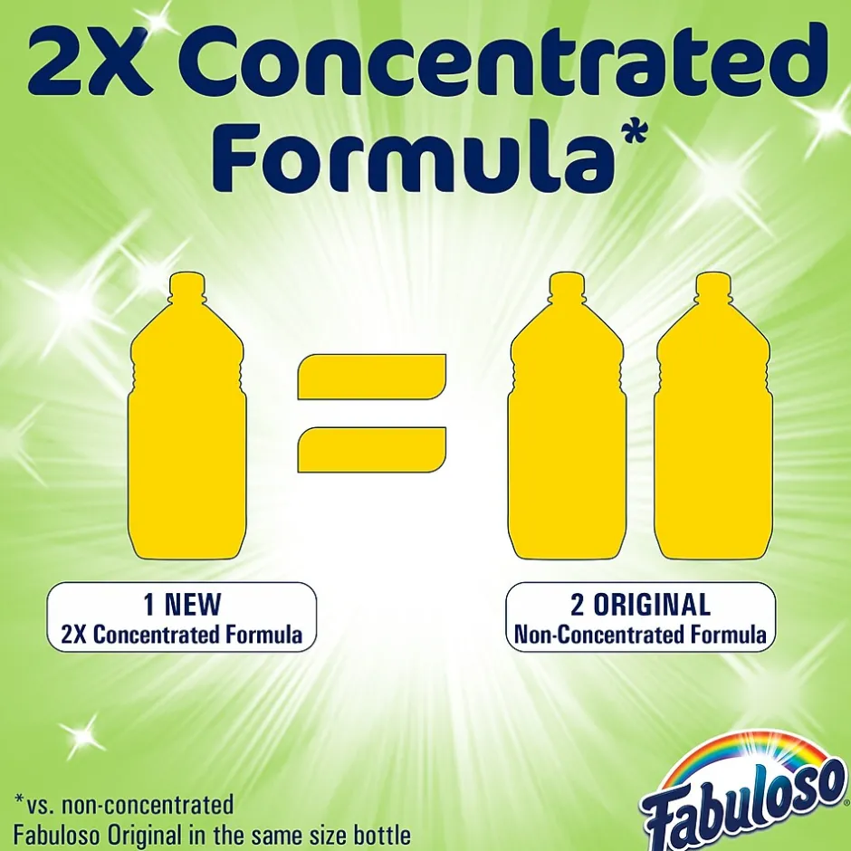 - 1 bottle of 2X Concentrated Formula = 2 bottles of Original (Non-Concentrated) Formula Fabuloso® Multi-Purpose Cleaners