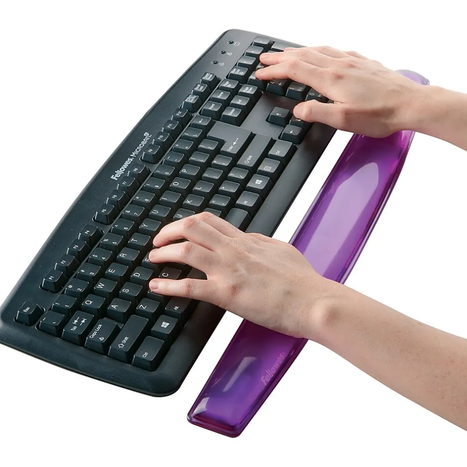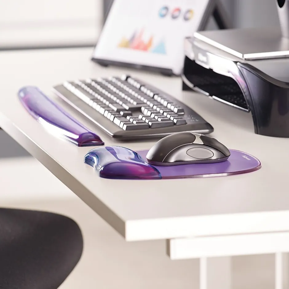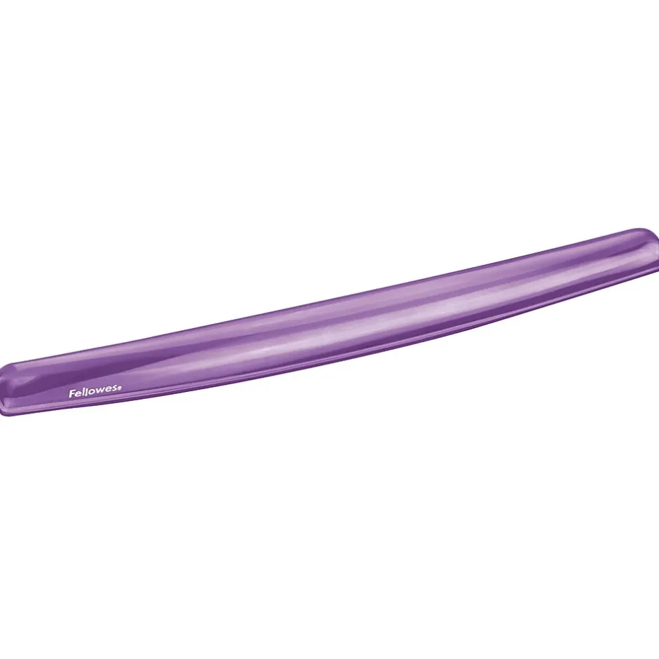 Keep your wrist aligned and express your style with this stylish transparent gel keyboard wrist support.The Fellowes Crystals™ ergonomic 91437 keyboard wrist rest in purple uses gel technology that conforms to your wrist andprovides superior comfort while relieving wrist pressure.