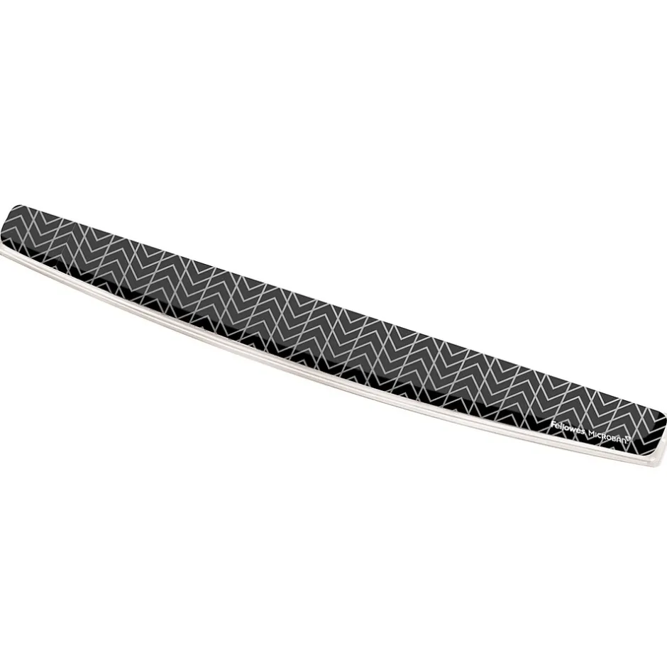 Keep your wrist aligned and express your style with this chevrongel keyboard wrist support.The FellowesGel ergonomic 9550001 keyboard wrist rest in chevron print, uses self-adjusting gel to provide superior comfort and softness to help in relieving wrist pressure. The MICROBAN antimicrobial product protection ensures cleanliness and safety. The stain-resistant polyurethane covering is easy to clean. The non-skid rubber backing keeps the pad in place.