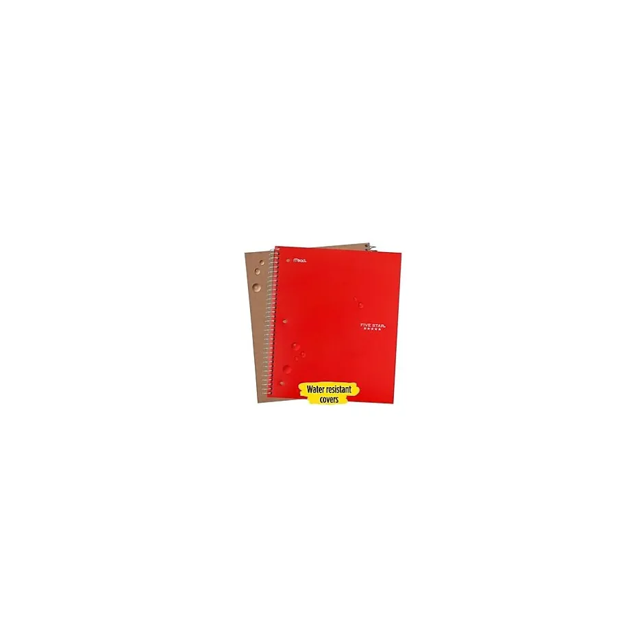 LASTS ALL YEAR. GUARANTEED!* Five Star 1 subject notebook has 100 double-sided, wide ruled sheets that fight ink bleed and are perforated for easy tear out. Sheets measure 8″ x 10 1/2″ when torn out. Tough pockets help prevent tears and hold 8″ x 10 1/2″ loose sheets. Covers are water resistant to protect your notes all year. Spiral Lock wire helps prevent snags on clothes and backpacks. Made with SFI certified paper. Notebook is recyclable – just remove the reinforcement tape on the pocket and recycle the rest! Available in Fire Red, Harvest Yellow, Forest Green, Tidewater Blue, Amethyst Purple, and Black. Color chosen for you.