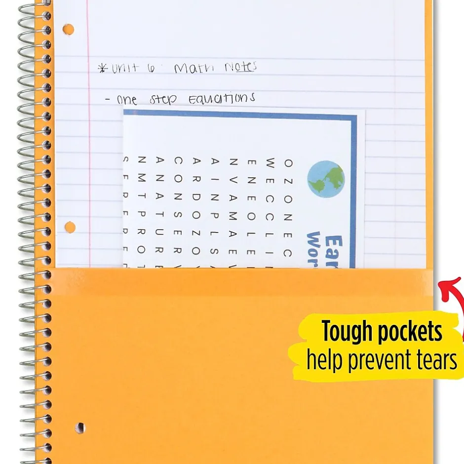 - Tough pockets help prevent tears and hold 8″ x 10 1/2″ loose sheets. Two 2-pocket dividers keep subjects organized. Covers are water resistant to protect your notes all year.