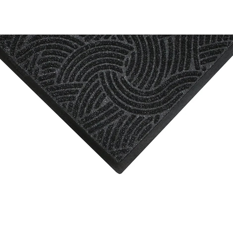 WaterHog Plus mats are durable, stain-resistant mats with a unique bi-level design that traps dirt and moisture, keeping your floors clean, dry, and safe in an attractive swirl pattern and are backed with 100% nitrile rubber making them commercially launderable.