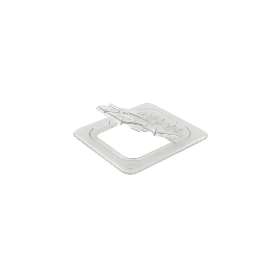 Cambro’s FlipLid® food pan cover fits sixth size Camwear food pans. This flip-up style lid allows for easy access to contents and keeps your food fresher longer, as well as reducing risk of cross contamination. The notched Flip Lid has a virtually unbreakable Camwear® polycarbonate construction to provide you with reliable food storage for years. A convenient notch is provided at the top of this lid to allow you to rest spoon in contents, while keeping the lid closed. The clear polycarbonate material makes it easy to see food contents inside this approximately 7″ x 7″ notched FlipLid®.