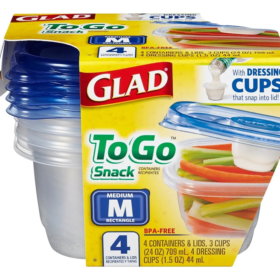 - Perfectly sized for proportionate snacking, the Glad To Go Snack food container is easy to pack for a busy family on the go