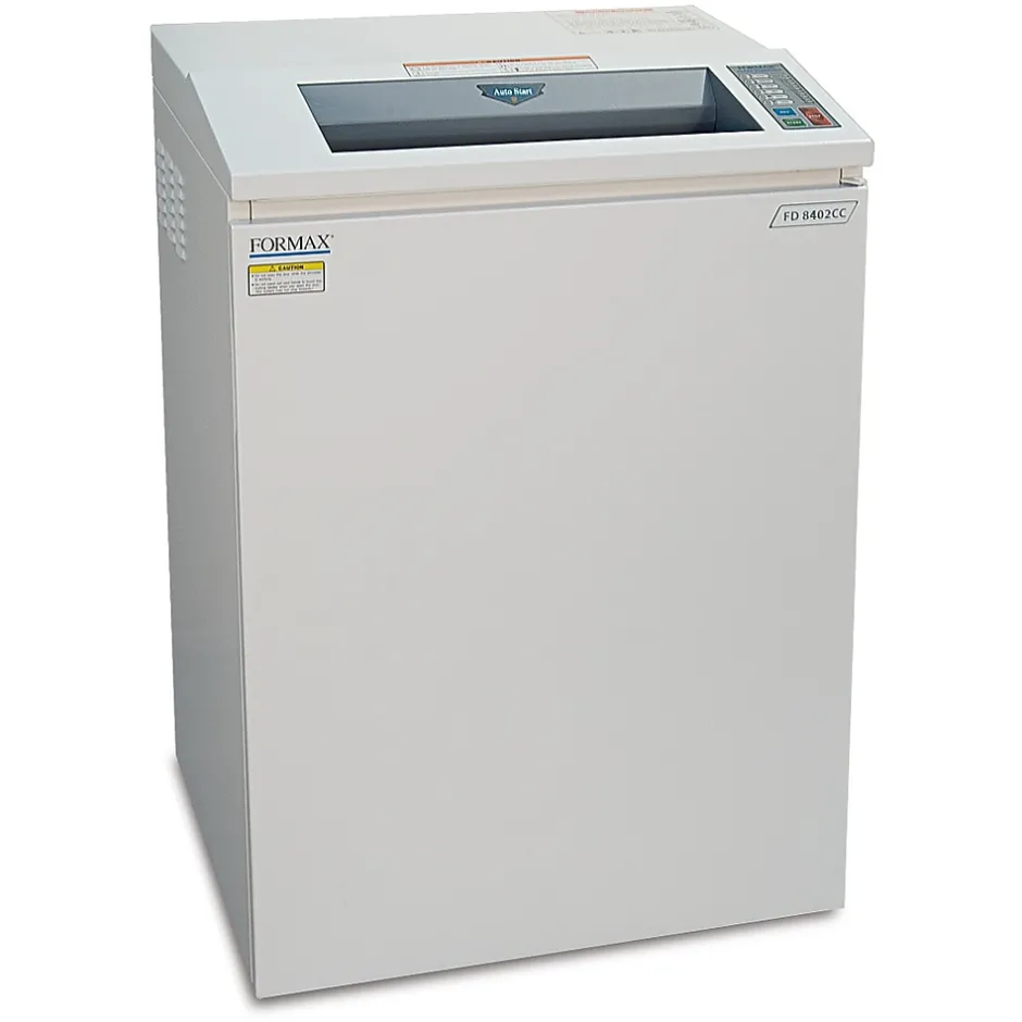 The FD8402CC is a heavy-duty shredder crafted with all-metal construction that guarantees years of reliable use. This sleek and practical cross-cut shredder can handle up to 26 sheets at a remarkable speed of 33 feet per minute, producing shred particles of 5/32” x 1-1/5” in size. The AC geared motor, equipped with heavy-duty steel gears, ensures high performance and minimal noise while effortlessly shredding though paper, staples, paper clips, and credit cards. The LED control panel, featuring a load indicator, simplifies operation, while the ECO mode conserves energy. With a lifetime guaranteed heavy-duty waste bin and a durable all-metal cabinet with casters, the Formax FD 8402CC combines functionality and longevity.