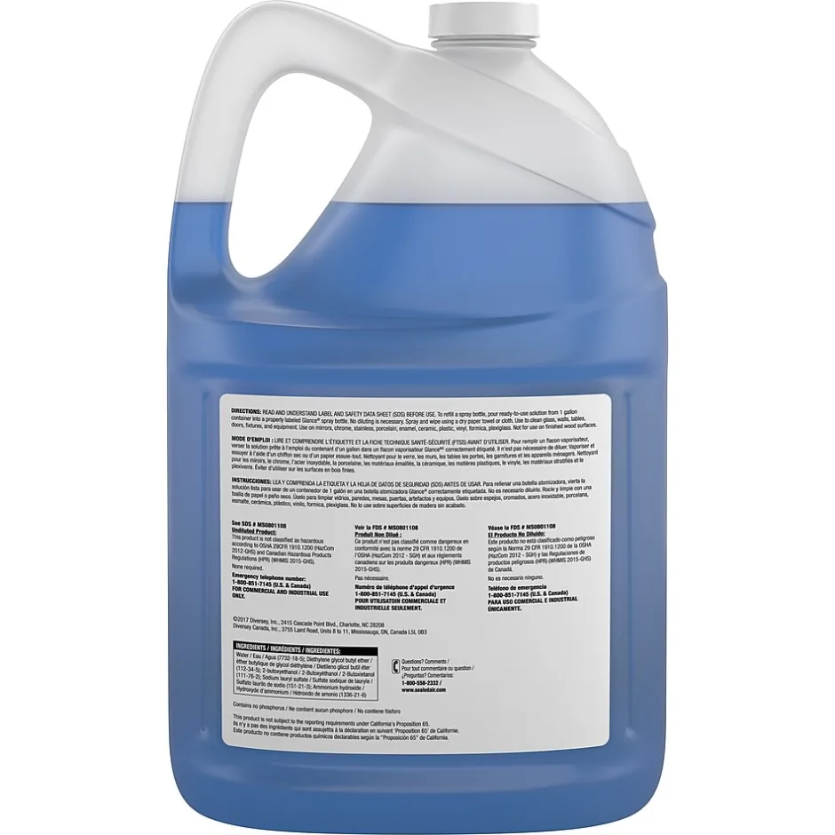 GlanceĀ® Powerized Professional Glass Cleaner is formulated to foam and cling to surfaces. This easy-to-use cleaner and polish breaks up soils and holds them even on a vertical surface.